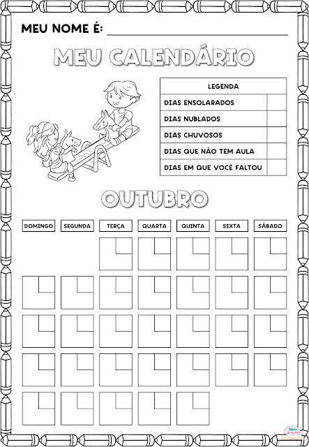 Como eu desenvolvo essa atividade: costumo levar um modelo ampliado e cada estudante recebe uma cópia no primeiro dia do mês. Nós conversamos sobre a ilustração, sobre quantos dias cada mês tem, se teremos feriados ou algum evento importante naquele período, quem são os aniversariantes do mês... Colorimos e combinamos uma legenda. Conforme os dias vão passando, eles se acostumam a chegar na sala e preencher seu calendário. Até me cobram quando eu esqueço, vocês acreditam?